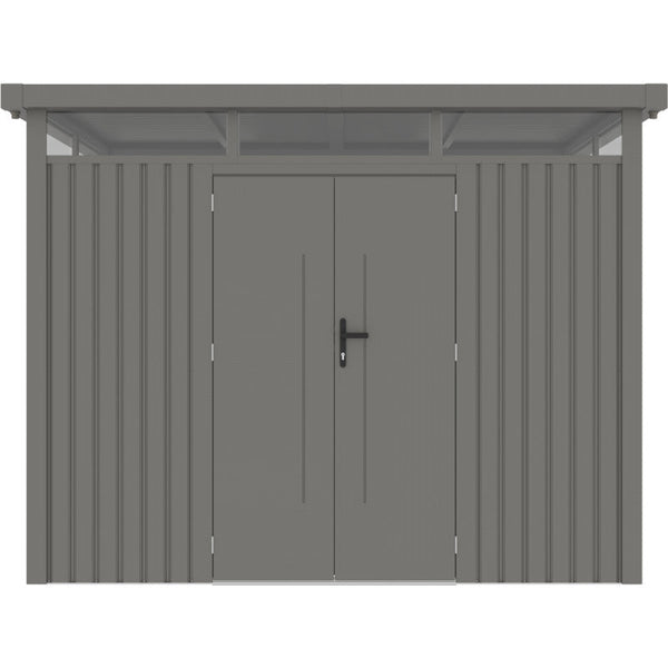 Diese Neuheit vom Hersteller X-Metal macht ihrem Namen alle Ehre. Das Gartenhaus Kosto ist eine beeindruckende Konstruktion aus galvanisiertem, lackiertem Stahl, dessen Dicke 60% über dem Standard der marktüblichen Gartenhäuser liegt. Diese Paneele sind zudem durch eine ebenfalls dickere innere Rahmenstruktur verstärkt.