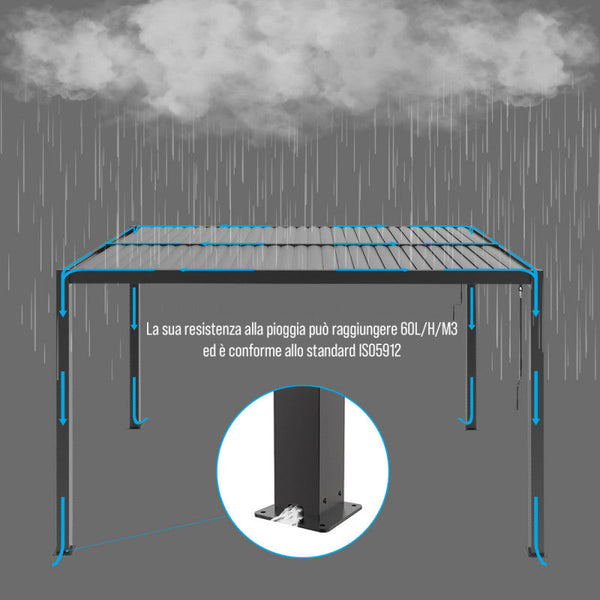 Bioklimatische freistehende Aluminium-Pergola in Hellgrau, 4x3m - X-METAL